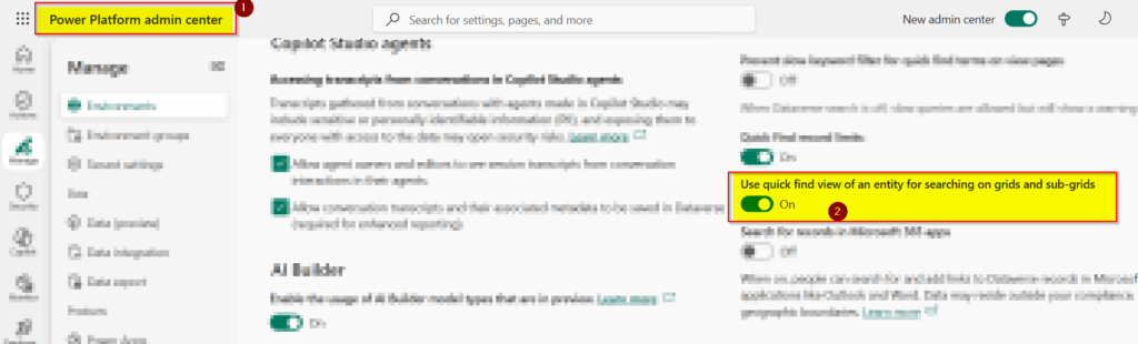 When you work with Dataverse Data Modelling for tables, you sometimes edit Quick Find View but you will not see the Quick Find View when you search. Follow the below steps to resolve. Step -1 : Enable Setting navigate to Power Platform Admin Center of the selected environment and select the environment then go to…